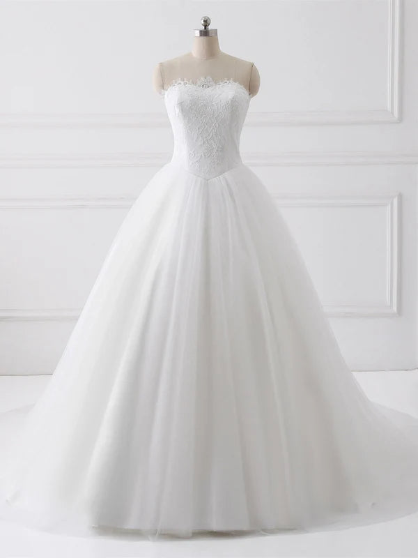 A-line Sweetheart Chapel Train Tulle Lace Wedding Dresses Off Shoulder Elegant Wholesale