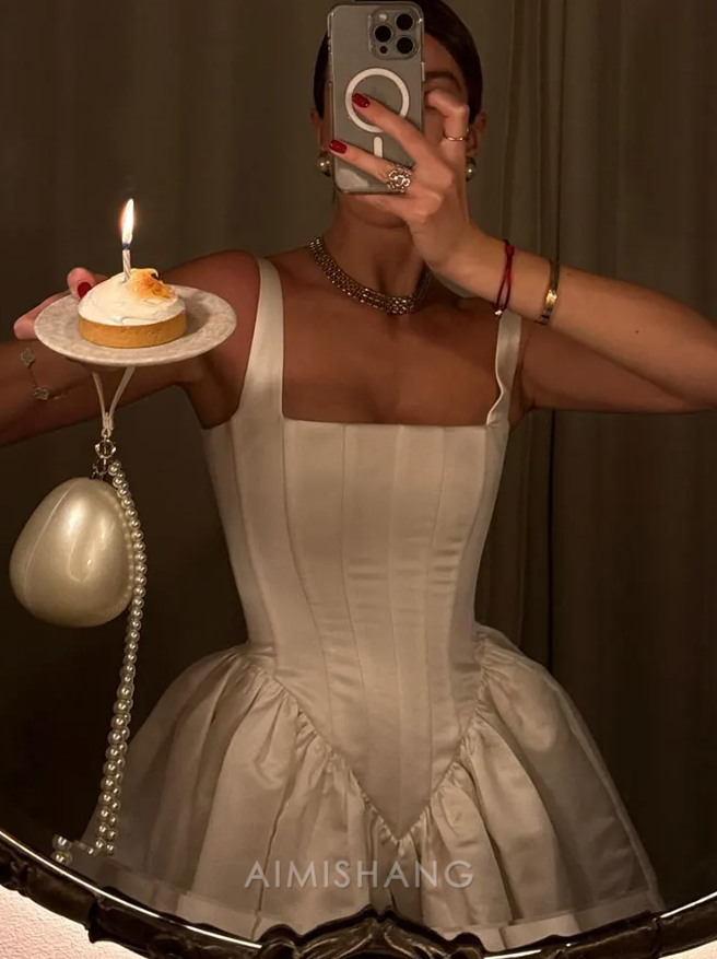 A-line Mini Dress Fashion Lady Pleated Homecoming Dress Short Prom Dress Lovely Birthday Party Dress