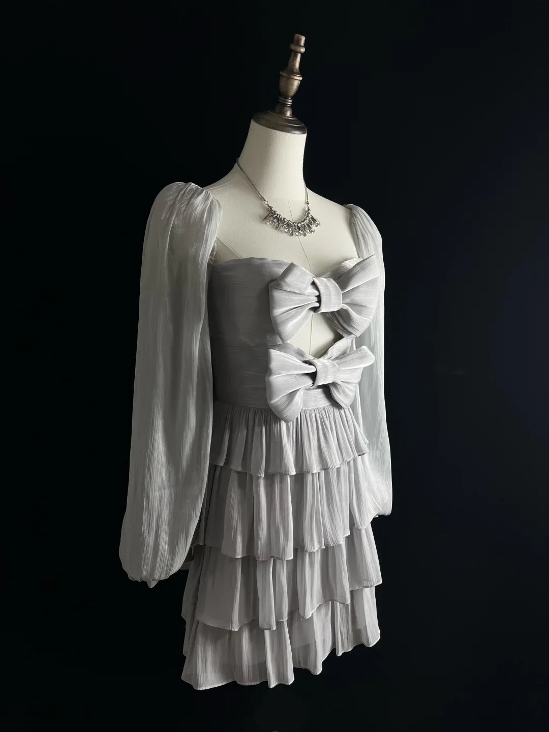 Cute A Line Long Sleeves Homecoming Dress Chic Party Dress Graduation Dress With Bow(s)