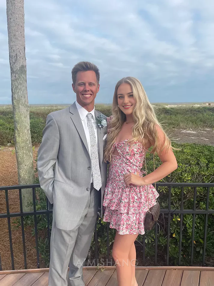 Cute Floral Print Dress Homecoming Dress One Shoulder Party Dress Summer Graduation Dress Mini Dress