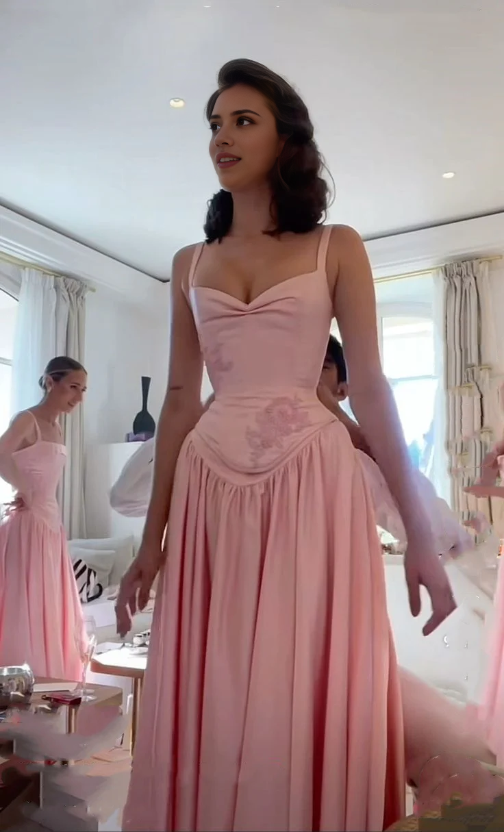 Elegant A-line Strap Satin Long Bridesmaid Dress Lace-up Back Charming Evening Party Dress