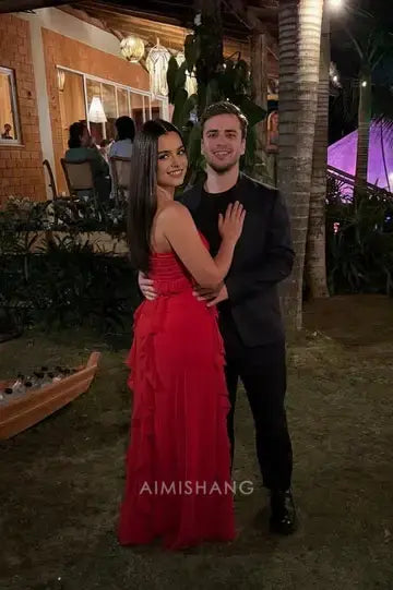 This strapless prom dress features a sweetheart neckline and an A-line silhouette that flatters a variety of body shapes. The long skirt is enhanced with ruffle detailing, adding movement and a touch of romantic elegance. Crafted to combine comfort with sophisticated style, this dress is ideal for making a memorable impression at any formal event.