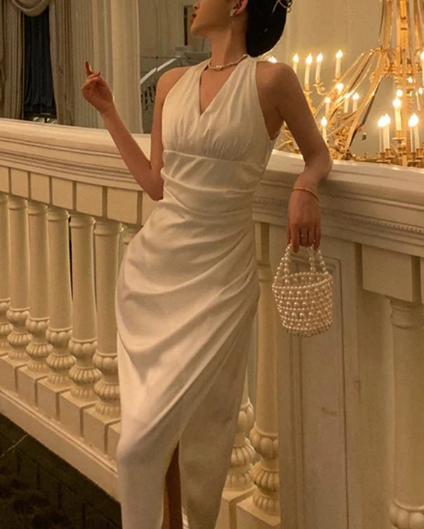 Elegant V-neck Long Prom Dress Formal Dress Evening Gown Simple Party Dress