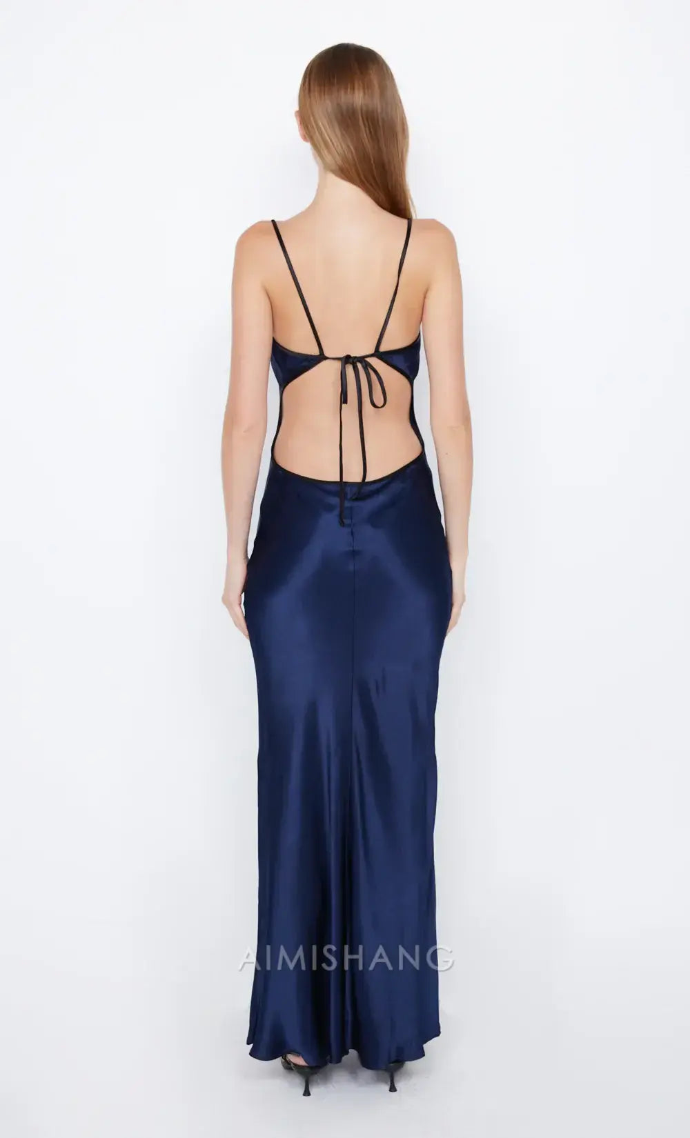 Aimishang Elegant Spaghetti Straps Sleeveless Satin Long Prom Dress Simple Evening Party Dress