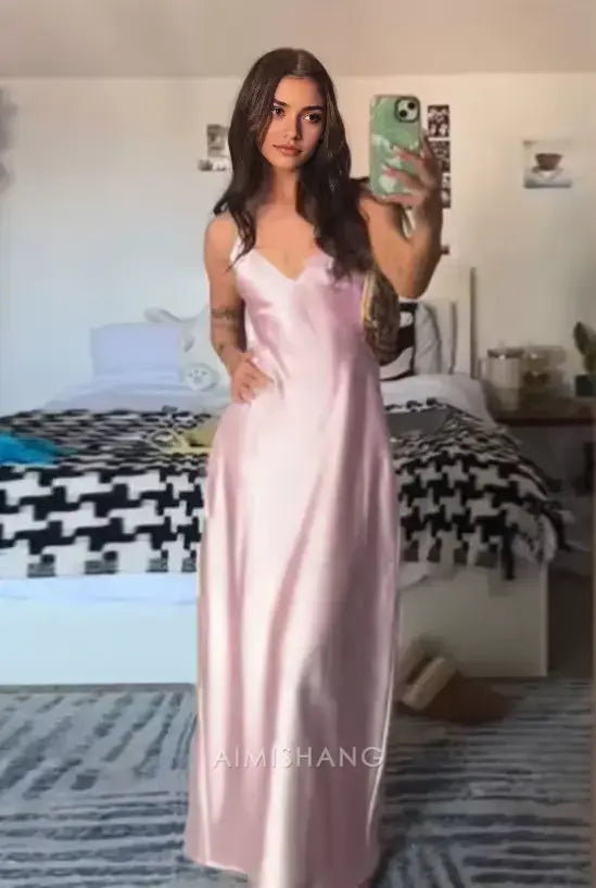 Aimishang Fashion Yellow V-neck Spaghetti Straps Sleeveless Prom Dress Simple Maxi Dress Elegant Evening Party Dress