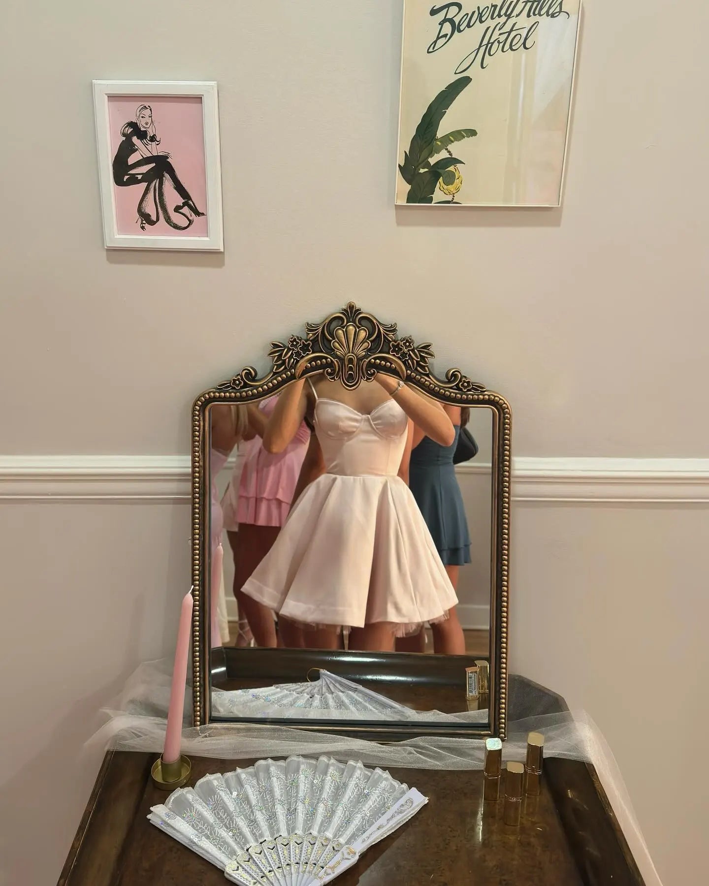 Lovely A Line Spaghetti Straps Homecoming Dress Short Prom Dress Sweet Birthday Party Dress