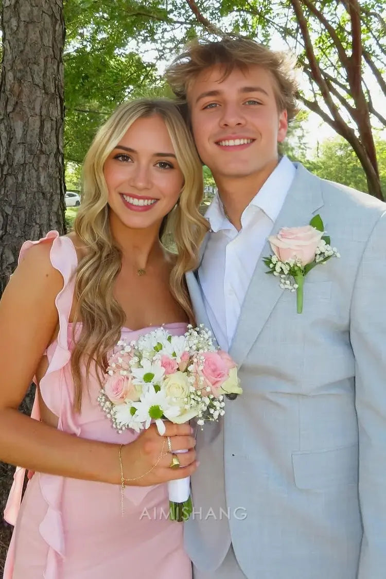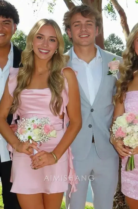 Lovely Straps Ruffle Short Homecoming Dress Cute Birthday Party Dress Sweet Back To School Dress