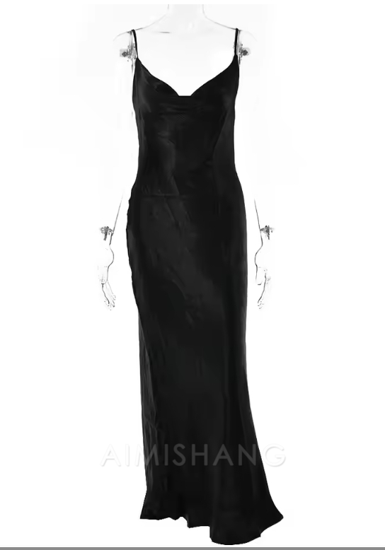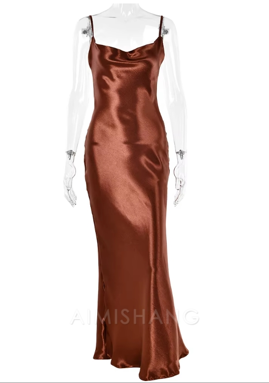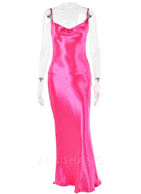 Aimishang Elegant Women Backless Satin Prom Dress Simple Club Evening Party Dress Formal Dress