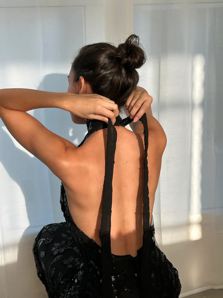 Sexy Deep V-neck Halter Sleeveless Long Prom Dress Charming Evening Party Dress