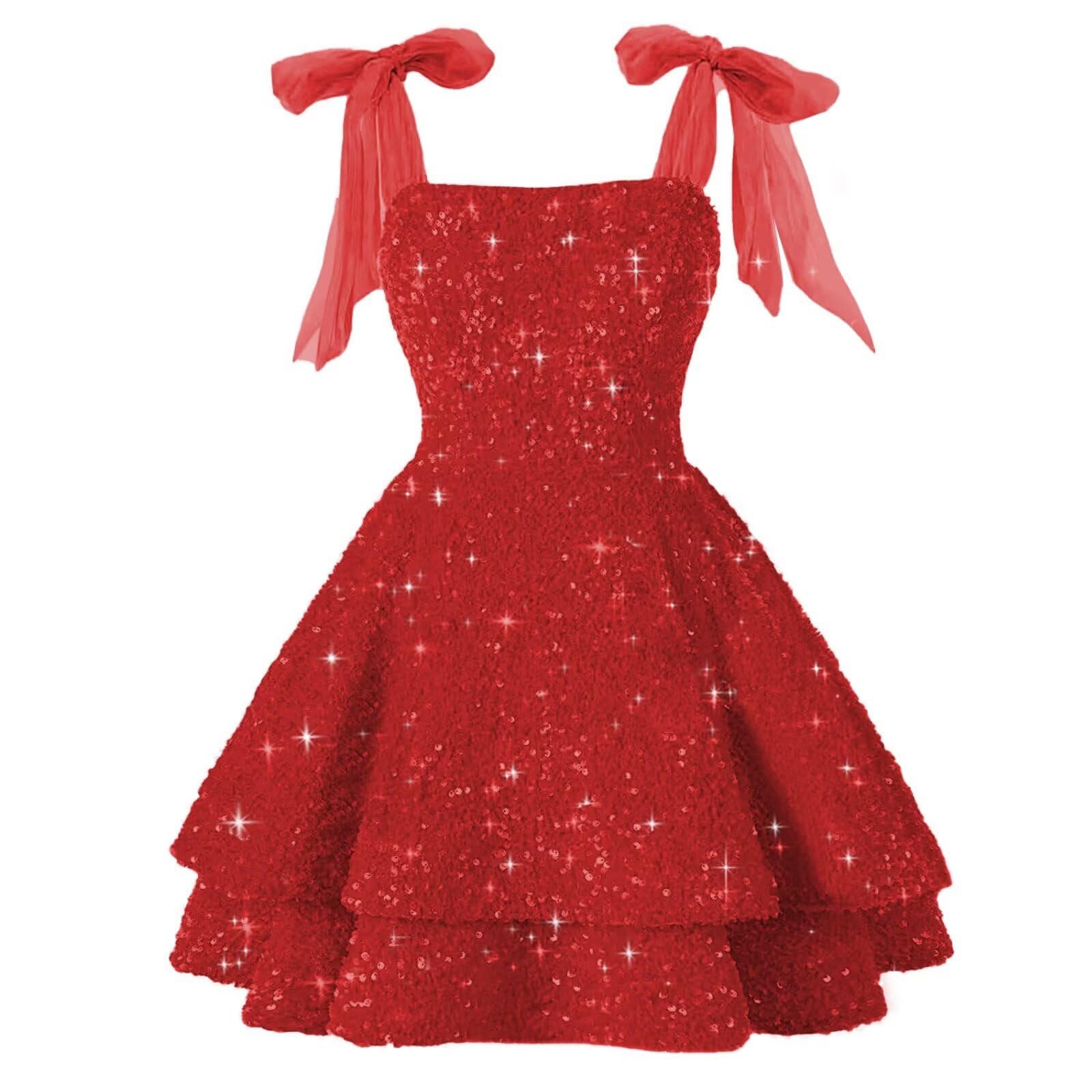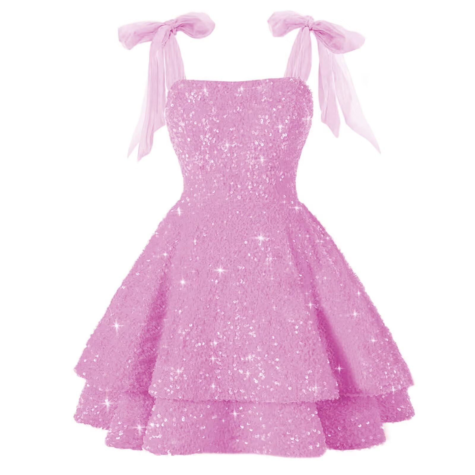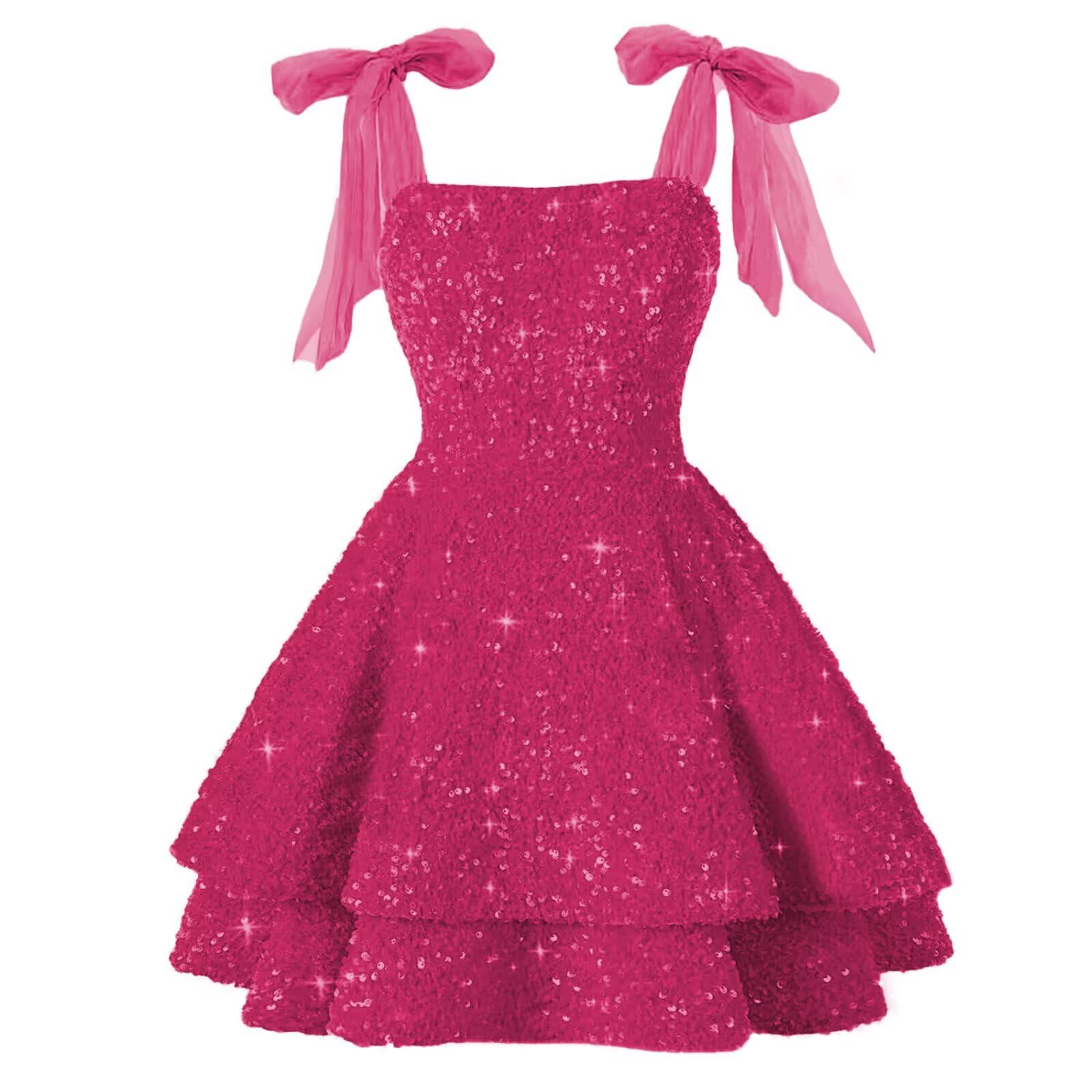 Sweet A-Line Sequins Homecoming Dresses with Bow Short Sparkly Graduation Dress Lovely Birthday Party Dress