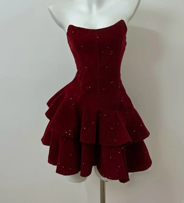 Sweet A Line Strapless Shiny Zip-up back Homecoming Dress Lovely Short Graduation Dress Cute Birthday Party Dress