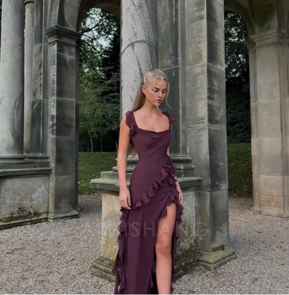 Twirly Twisted Ruffle Long Prom Dress Charming Evening Party Dress Elegant Formal Dress