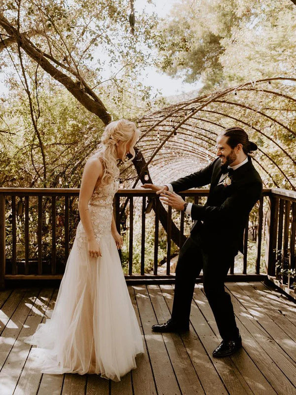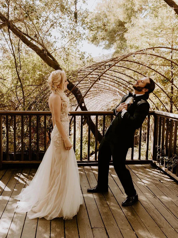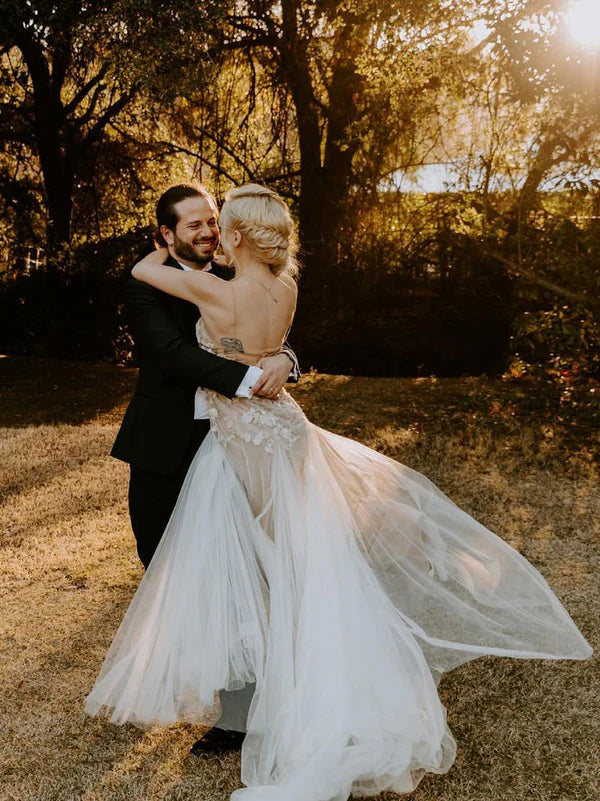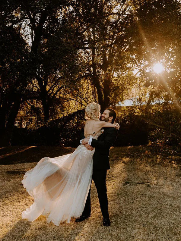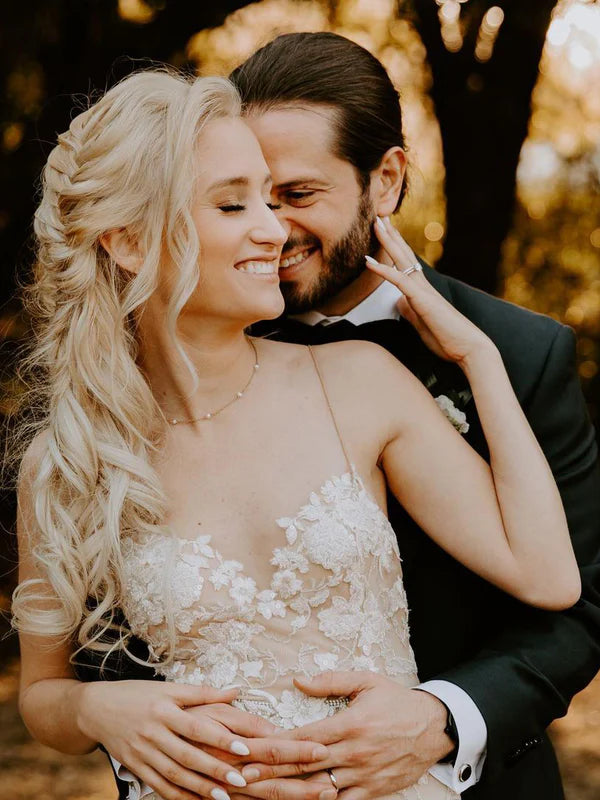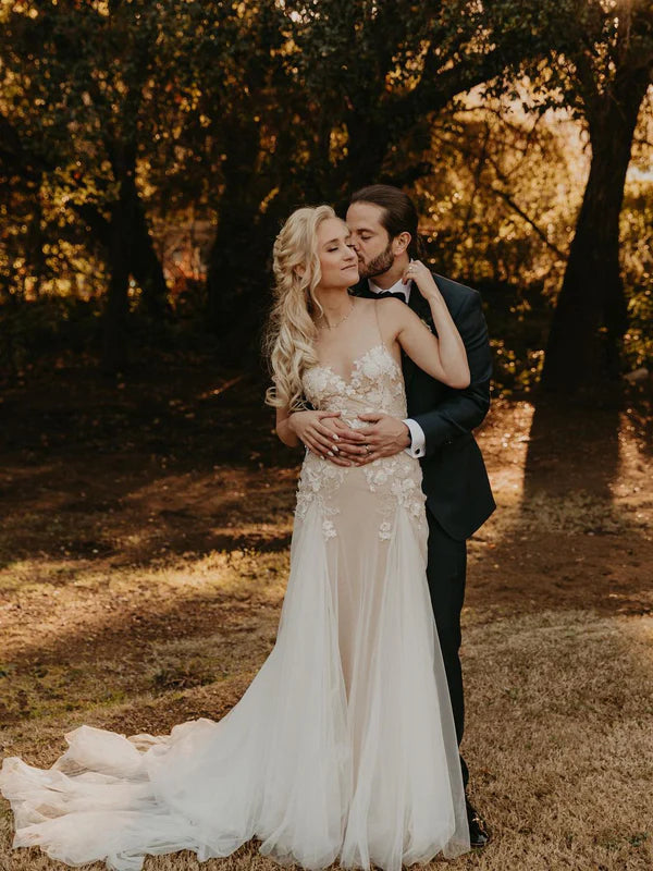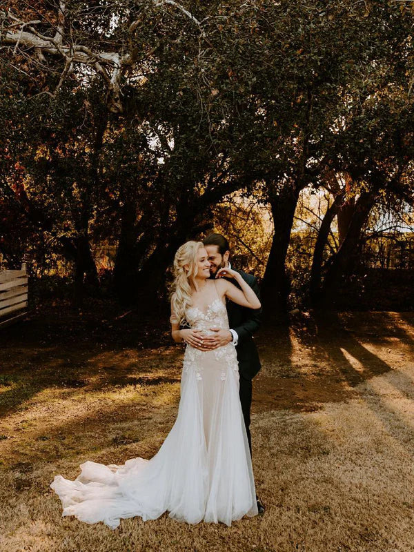 Elegant Spaghetti Straps Neckline Sheath Wedding Dresses With Appliques