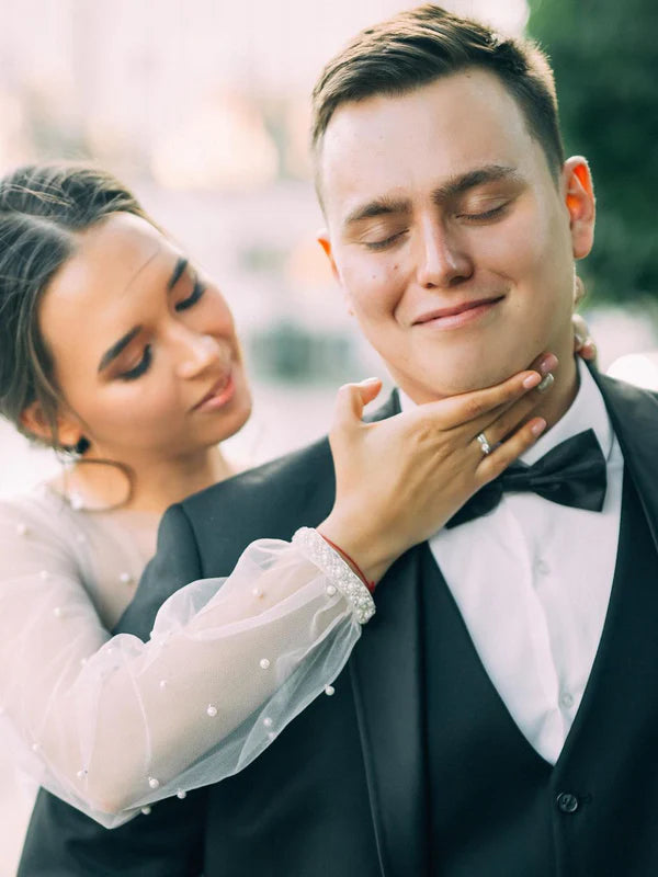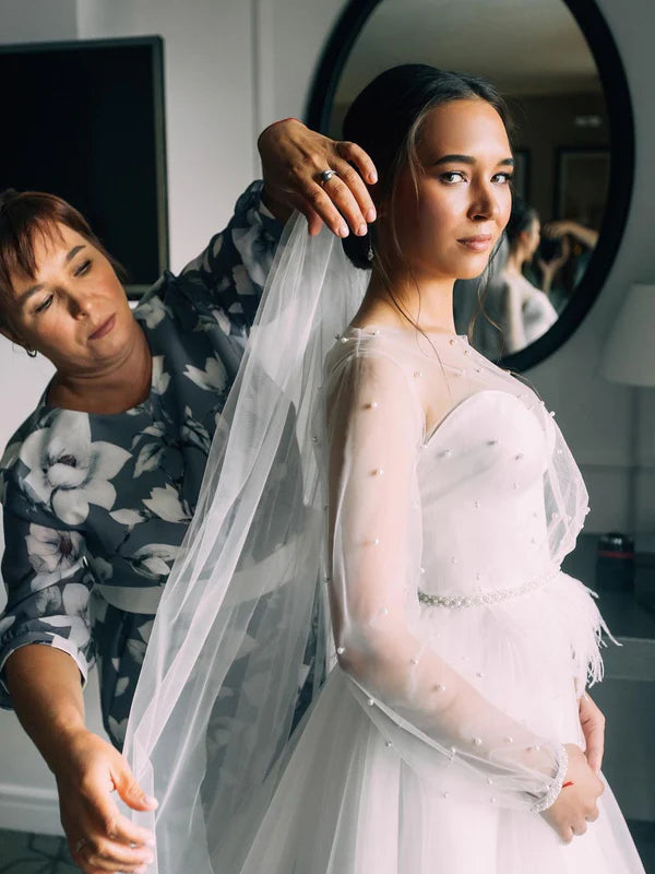 Noble Beaded Tulle Long Sleeves Lace Illusion A-line Wedding Dresses