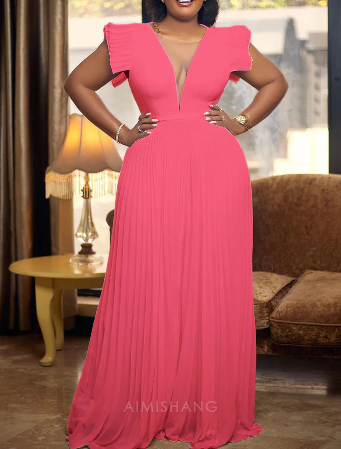 Aimishang A-Line Wedding Guest Dresses Elegant Dress Party Wear Wedding Party Floor Length Sleeveless V Neck Evening Dress with Pleats