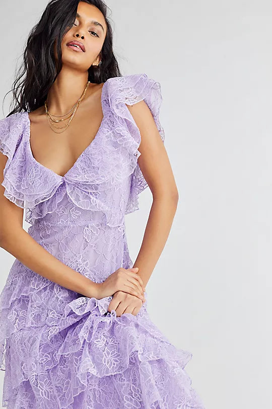 Aimishang Charming V-neck Layered Lace Long Prom Dress Sweet Party Evening Gown Elegant Formal Graduation Dress