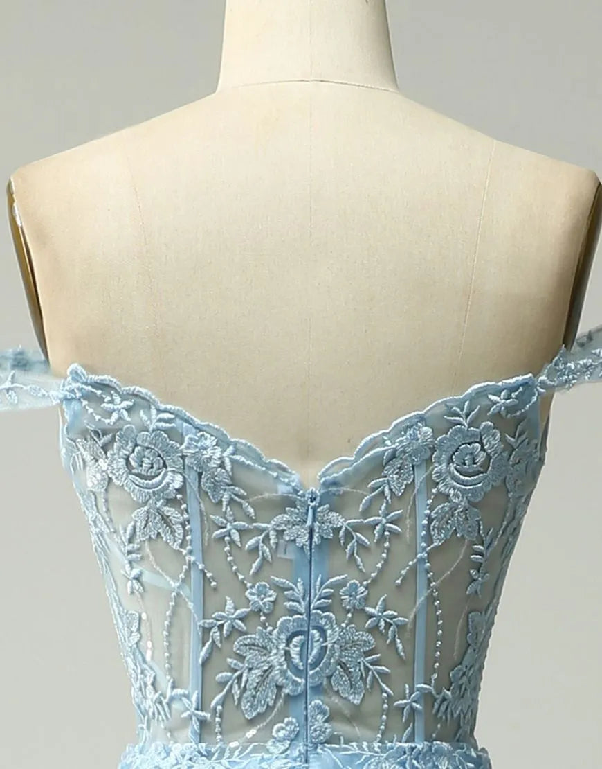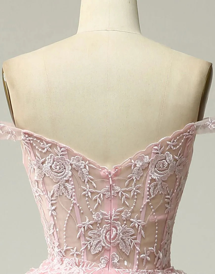 A-Line Off The Shoulder Tiered Long Prom Dress Charming Evening Party Dress With Split